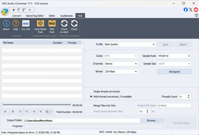 من أبرز مزايا AVS Audio Converter دعم التحويل الدفعي، حيث يمكنك تحويل العديد من الملفات دفعة واحدة بسهولة وسرعة، مما يوفر الوقت والجهد. بالإضافة إلى ذلك، يمكن ضبط إعدادات التحويل بدقة مثل التردد، معدل البت، وعدد قنوات الصوت، مما يتيح تحسين جودة الصوت بحسب الرغبة واحتياجات الاستخدام.
